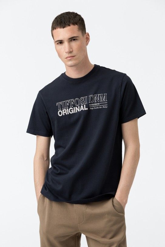 T-shirt de manga curta e gola redonda. estampado frontal.