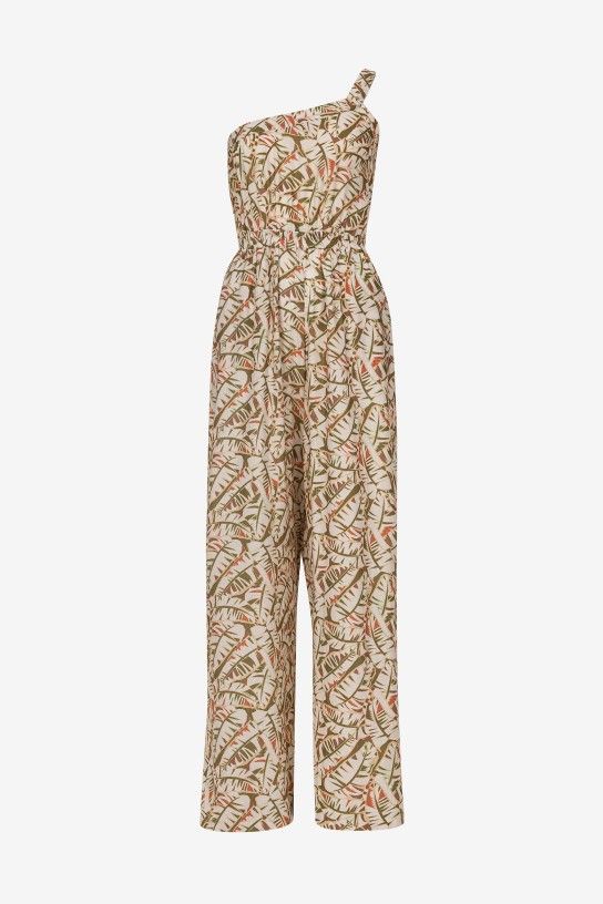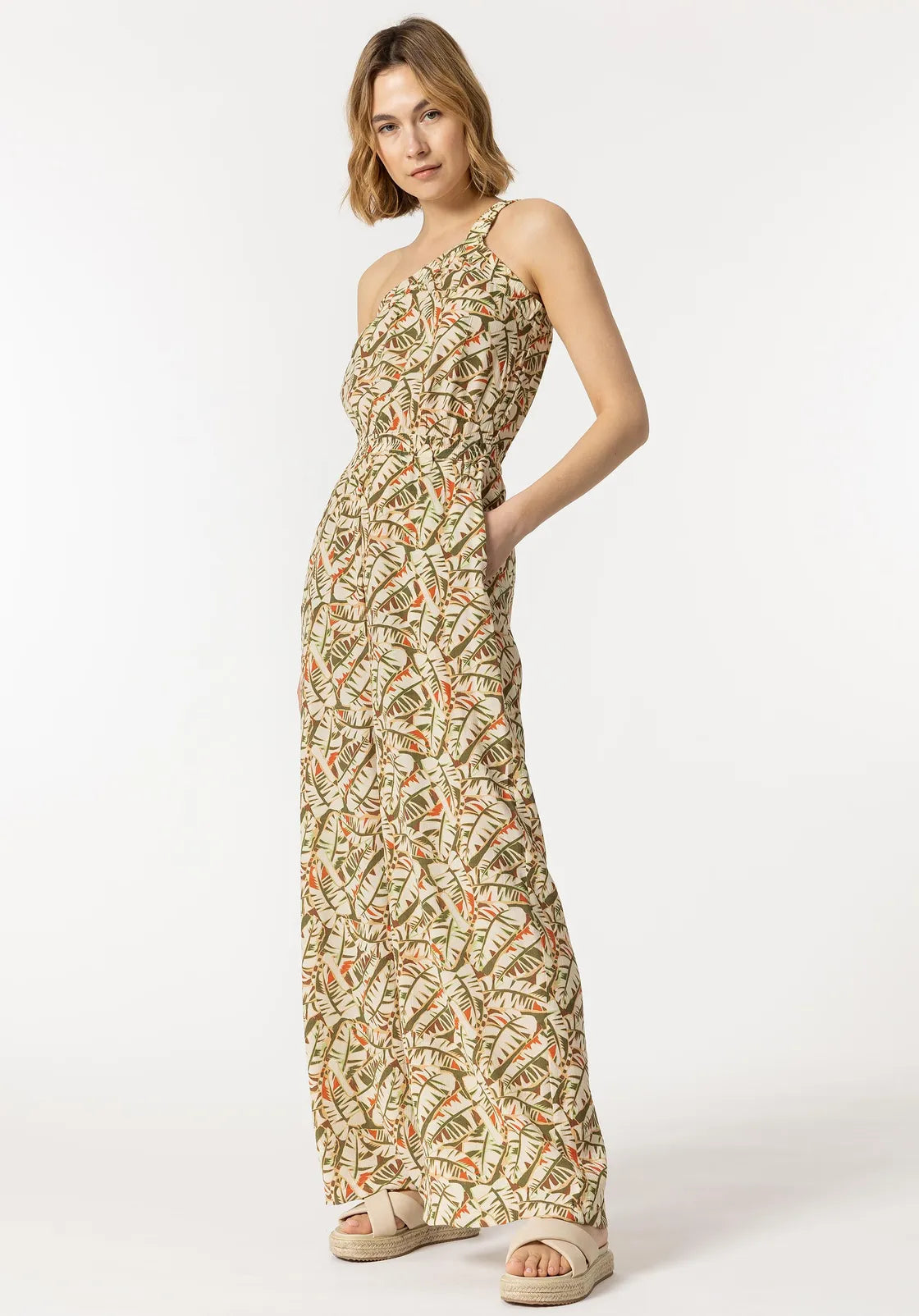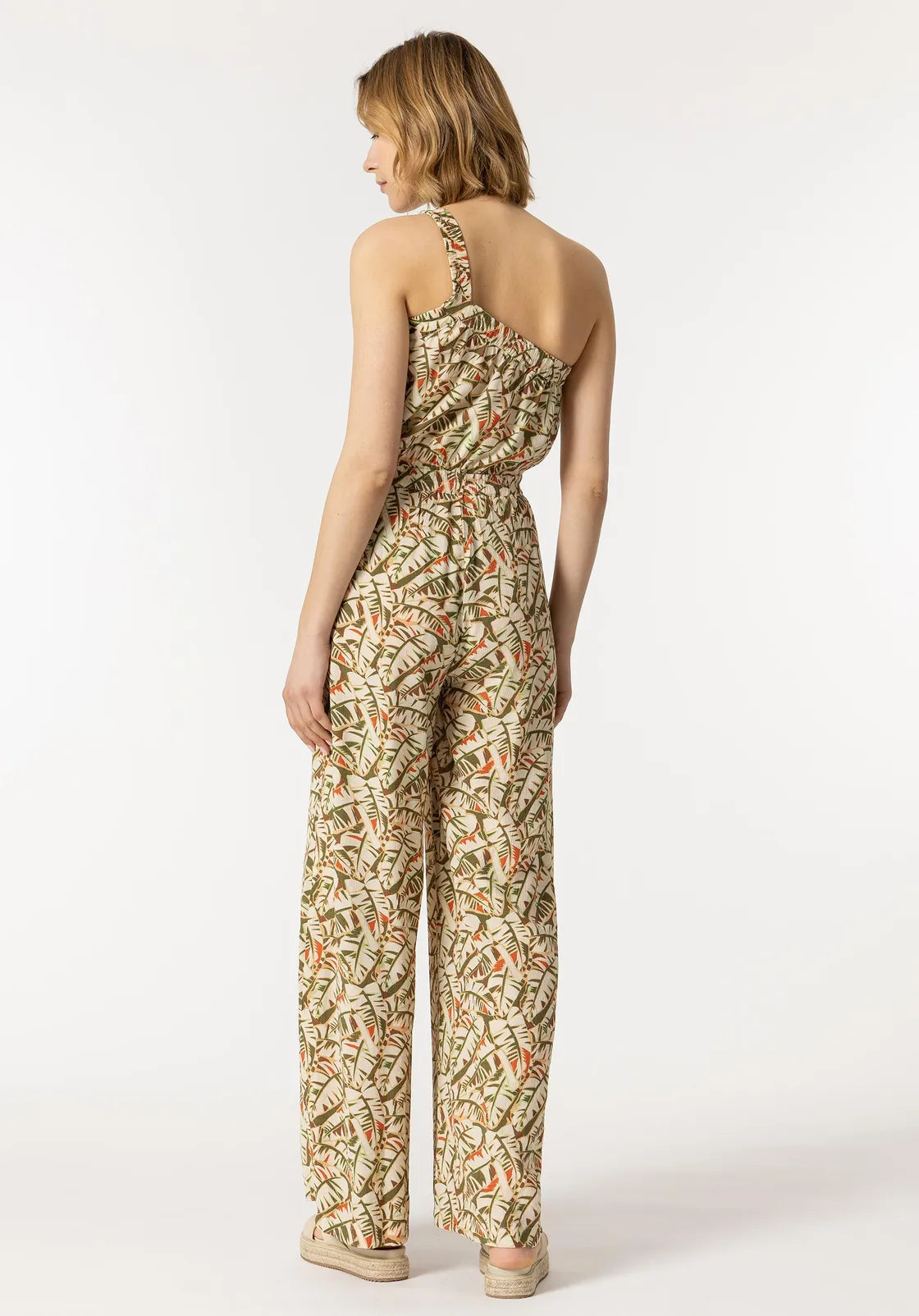 Macacão com elástico na cintura e bolsos laterais. estampado all over.